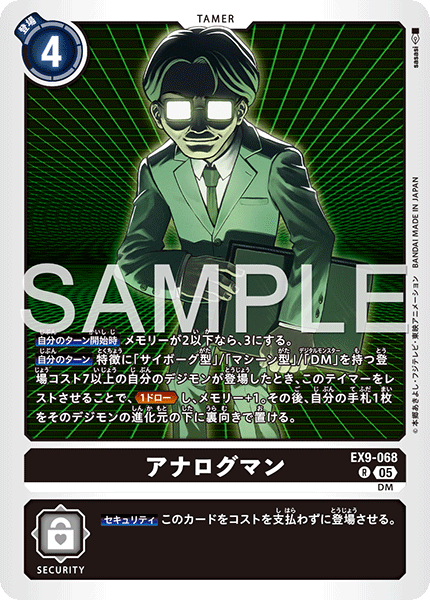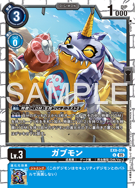 - [Your Turn] [Once Per Turn] When face-down cards are placed in this Digimon's digivolution cards, this Digimon may digivolve into a [Ver.2] trait Digimon card in the hand with the digivolution cost reduced by 1.